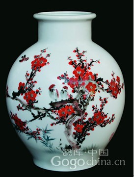 瓷库中国精选的这款大师手绘花瓶以喜鹊、梅花为主要内容,以谐音或表意突出“喜”字,加上梅花鲜艳的红色,使花瓶的喜庆感更为浓厚。喜鹊落在梅花树梢上,可称之为“喜上眉梢”,而两只喜鹊则代表着“双喜临门”。喜鹊因其“喜”,在素爱喜庆的我国是常见的纹饰:绘梧桐、喜鹊,称“同喜”;绘一豹、一喜鹊,称“报喜”;绘二喜鹊、一铜钱,称“喜在眼前”。