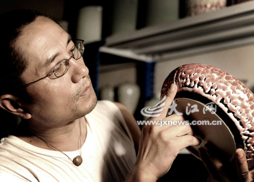 童治亮表示,他非常享受这种创作的乐趣,享受创作过程中窑变所存在的变数。(首席记者袁征 文/图)