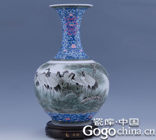 图:高档瓷器-松鹤延年陶瓷花瓶-大师作品