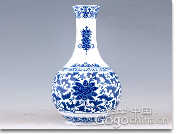 图:袁述凡大师手绘缠枝莲纹青花花瓶