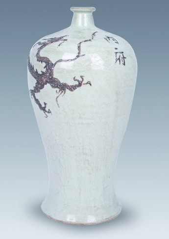 图:明代白釉褐龙内府梅瓶