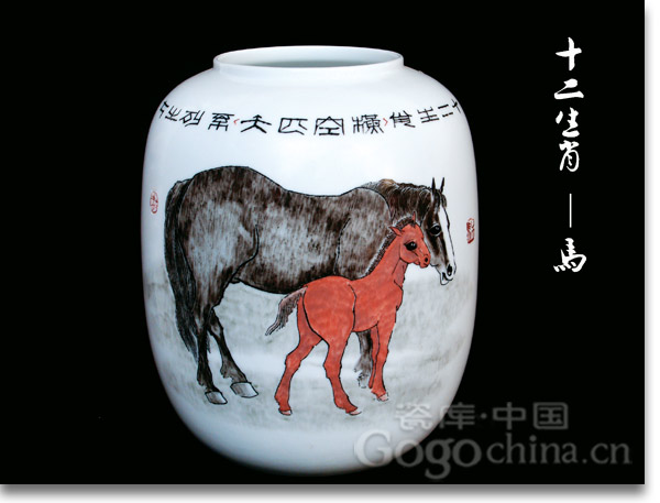 图:易炳萱大师手绘十二生肖精品瓷器花瓶之马