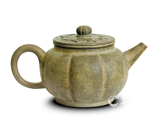 还有一把陈仲美的“如意壶”,全壶为泥黄色,壶腹筋纹见八瓣瓜棱状,壶形平肩,壶盖见一圈如意纹,象征称心如意,起拍价为68万港元。