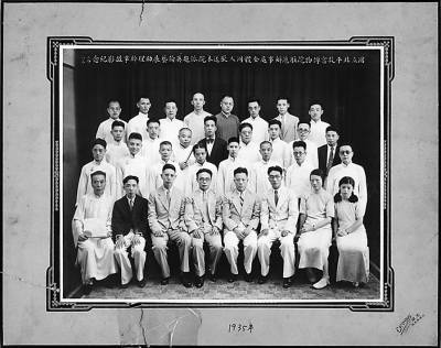 故宫文物“南迁”期间,北平故宫博物院驻沪全体同仁,摄于1935年。前排右四为院长马衡先生。欧阳定武供图
