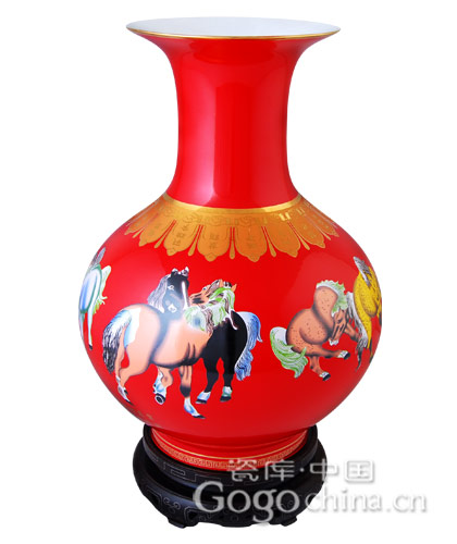 电影故事片《冰山上的来客》有一首动听的插曲“花儿为什么这样红”,曾到处传唱,风靡一时,动听的旋律,炙至人口。红色是热情的色彩,它强烈,奔放,激动......”而一字之差的“花瓶为什么这样红?”则使我们对瓷都景德镇富有特色的红釉花瓶产生了浓厚的兴趣,引起了某种联想,确实对于全国其它许多陶瓷产区来说,景德镇具有特色的红釉瓷器可以说是独居一家,别无分店了。景德镇的青年人结婚如果不设法买上一对红釉花瓶摆设在新房里,那是非常遗憾的事情。我国政府一些领导人出访也常常把景德镇的红釉瓷器作为珍贵的国礼馈赠国外宾客,红色的花瓶几乎遍及世界各国,人们一看见“红得好像燃烧的火”的花瓶,都情不自禁地佩服中国景德镇陶艺家们的高超制瓷手艺。是的,“花儿为什么这样红”是一首优美的歌曲,是陶瓷爱好者们对瓷都景德镇丰富多彩的红釉瓷器(如祭红、郎窑红,钧红、釉里红、火焰红等)的赞叹和歌颂。