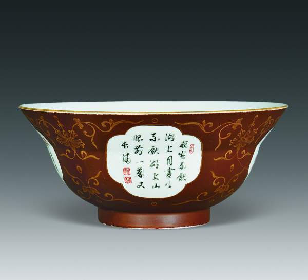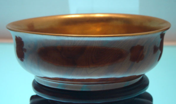 扎古扎雅木碗:是仿西藏喇嘛教木质碗烧造的一种碗式。器呈侈口,弧腹,器壁较浅,拱壁足底,内外施木釉或内施金彩外施木纹釉。为清代乾隆时期的独特造型。乾隆皇帝在其御题诗中称其为“扎古扎雅木”。