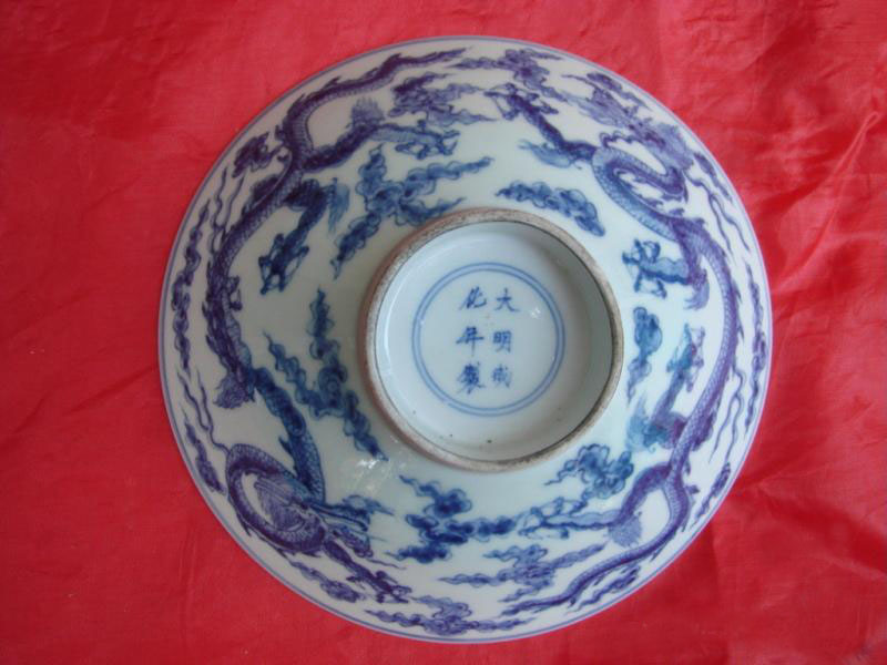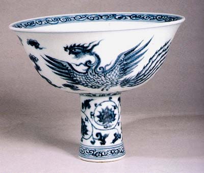 高足碗:也称“靶碗”,有中空足封闭底印和不封底两种。口微撇,近底处丰满,下承高足,造型与高足杯相似,略大。以明永乐红釉、官德釉里红、成化斗彩最为名贵。