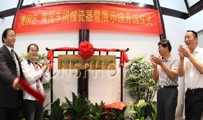 2011年8月18日,由香港收藏家黄国定和黄国丰兄弟捐赠的91件瓷器藏品在江苏苏州园林博物馆正式对外展出。这批捐赠的瓷器包含瓶、盘、碗、罐、尊、觚、壶、如意、笔筒等多种类型,其中体积最大的为一件粉彩双龙耳缠枝番莲纹扁瓶,花纹繁杂细密,高达66.5厘米。 据悉,黄氏兄弟祖籍广东宝安,幼年随父母定居香港。上个世纪90年代初,黄氏兄弟继承父辈收藏事业,共同创办了“丰定轩”,至今已有近30年的收藏经验。