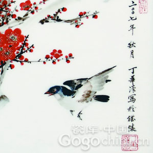 图:丁华汉大师手绘釉下五彩瓷板画梅花