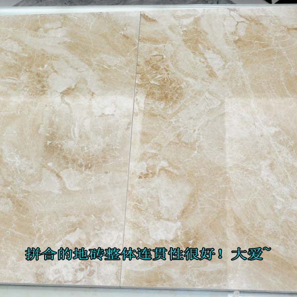 把两块砖平放在桌子上的时候,小陶发现两块砖的纹理整体性很好,很和谐统一。小陶再把砖旋转了n个角度依然如此。因为它免却了小陶对瓷砖拼接后的风格统一性的担忧,所以,加分!