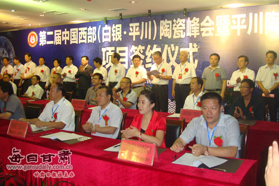 开幕式上,省人大常委会副主任周多明和省政协副主席李永军为白银市平川区“中国陶瓷产业转移示范基地”揭牌;副省长虞海燕宣布“第二届中国西部(白银·平川)陶瓷峰会暨平川陶瓷文化节开幕”;中国陶瓷工业协会理事长何天雄宣读了《中国陶瓷工业协会关于授予白银市平川区“中国陶瓷产业转移示范基地”称号的决定》。
