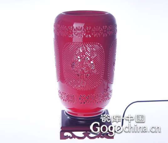 图:景德镇红瓷高档手工镂空陶瓷台灯