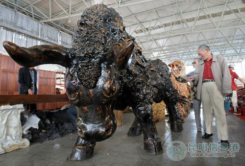 民博会上的木雕作品吸引眼球