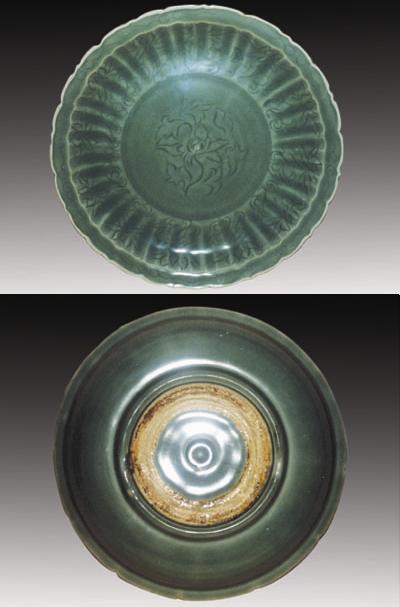中国作为龙泉青瓷的故乡,相比之下,现收藏于国内国家博物馆的龙泉青瓷不论在器物品种上,还是制作精美程度上都难以全面客观地反映宋元明龙泉青瓷的面貌,不得不令人深感遗憾。其实,除了国家馆藏的龙泉青瓷外,流散在民间的龙泉青瓷亦不少,其中也不乏精品佳作,笔者在多年的收藏中也陆续发现和收藏了十多件龙泉青瓷,也从城建工地收藏到一批出土的且精美的宋、元、明龙泉青瓷片。为促进龙泉青瓷的研究,今介绍二件笔者收藏的元代龙泉青釉大盘与喜爱龙泉青瓷的朋友们共赏。