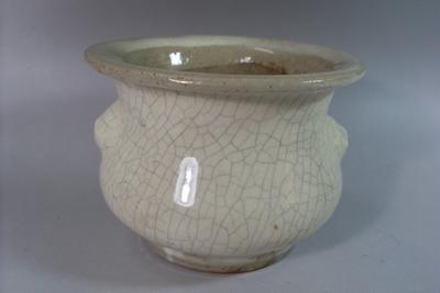开片,为瓷器釉面的一种自然开裂现象。开裂的原因有两种:一是成型时坯泥沿一定方向延伸,影响了分子的排列;二是坯、釉膨胀系数不同,焙烧后冷却时釉层收缩率大。因此开裂原是瓷器烧制中的一个缺点;但人们掌握了开裂的规律而制出的开片釉(即裂纹釉),变成为瓷器的一种特殊装饰了。宋代的汝、官、哥窑都有这种产品。开片又称冰裂纹, 按颜色分有鳝血、金丝铁线、浅黄鱼子纹,按形状分有网形纹、梅花纹、细碎纹等。