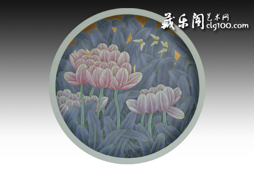 感悟其作品,于外在形式的美感也于内在的气韵,玉华金泥的另外一层意味则是内在心灵世界美感的外化。张闻冰善用完满的构图,作品没有在留白之处,内在的形式中间,构造出最美最饱满的图案,形成了陶瓷艺术的一种圆满的装饰。张闻冰意在“凸”出他的内心世界,如《姹紫嫣红》等系列作品中,张闻冰有意识地安排了花与叶的穿插,《鎏金荷塘》中,延展的,带有韵律的荷叶也是作者的意味化处理,将其画面扩大,扩大到花蕊的零距离,于一花一世界中感悟荷塘的诗意与禅意。张闻冰的饱满构图,则是一种色中见空的思想,是一种入世与出世的契合之地。在作品的构图法则与设色中,一切的外在形式即色象皆为空的境地,在有生命的形式中感悟禅意的美感与内心的欢喜.张闻冰把握了属于自身语意的表述方式,以风格化的陶瓷语境表述,打破了以绘画为陶瓷艺术的装饰形式的审美主流,形成了一种婉约的带有诗意的装饰之风。