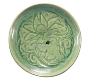 金代·耀州窑青釉刻花莲纹盘