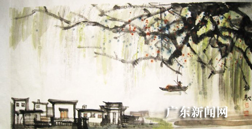 中新广东网8月24日电 自古以来,思乡之情人皆有之。画家操弛日前借用笔法之韵创作瓷盘水墨画“故乡印象”,抒写她在对故乡的依恋和疏离中那份原始之情。