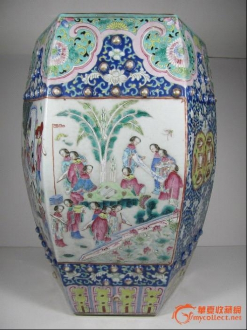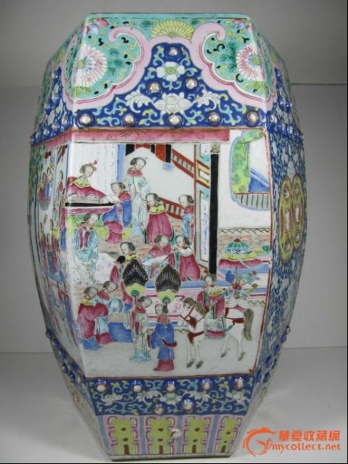 华夏收藏网第444场标王:咸丰粉彩人物六方绣墩