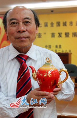 “七城会”特许礼品“祈福瓷壶”亮相