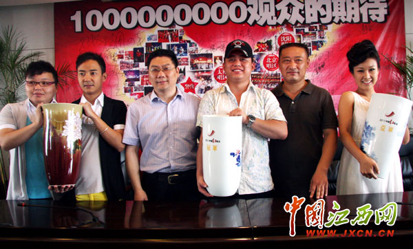 景德镇陶瓷艺术大师余欣向2011红歌会三甲送来陶瓷奖杯。