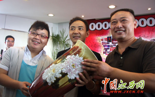 “这三幅以井冈精神为创作元素的陶瓷艺术品我整整创作了一年。”余欣告诉记者,他小时候特爱看电影《闪闪红星》,而平时不怎么看电视的他,一次在创作时偶尔听到了电视里传来了《闪闪红星》的主题曲,听女儿介绍才知道原来是红歌会。从此,他每天都准时锁定红歌会,成为了一名超级红歌迷。“红歌会办得这么好,我要参与进去才行。”当看到红歌三甲捧着纪念品时,余欣说,我太激动了,我终于与红歌结缘了。