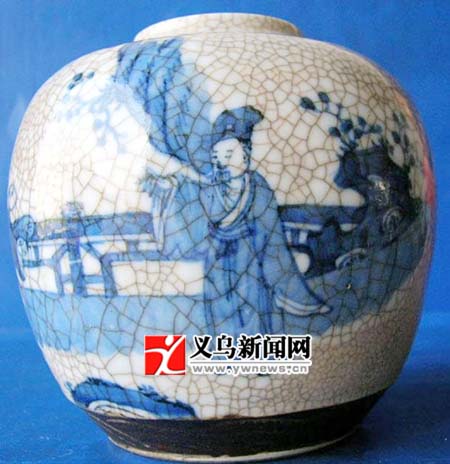 我满脸疑惑地问道:“这也算好东西?这么破了还有用吗?”几位藏友听后哈哈大笑,问其原因才知道,原来这是一只清代时期的开片人物青花罐,裂纹只是罐子的特征。我仔细看了后才发现,这只高为12.8cm,口径为5.5cm,底径为8.2cm的罐子,开片自然绘画精细生动,胎体细腻完美,而我居然把它当作垃圾给扔了,好在并无损害,不然会抱憾终生。