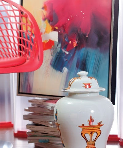 瓷器控的休闲角落,更应布置得文雅一些,添置一件应景且实用的瓷器,可以装东西的将军瓮就不错。如这款改良风格将军瓮,既有着中式的情怀,金色西洋王冠图案又赋予其一种西式宫廷的奢华感,里面可以收纳下一大堆零嘴吃食。