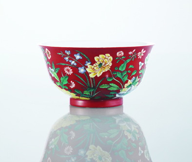 珐琅彩瓷又称瓷胎画珐琅或珐琅画瓷,是专为清代宫廷御用而特制的一种精细彩绘瓷器,创烧于康熙晚期,由造办处珐琅作的匠师将铜胎画珐琅之技法成功地移植到瓷胎上而创制的新瓷器品种。雍正时期,珐琅彩瓷的工艺和绘画达到成熟,乾隆后期由于粉彩的兴起而逐渐销声匿迹。由于当时产量较少,能够留传至今的传世品极少,据有关史料记载,原清宫旧藏康、雍、乾三朝珐琅彩瓷主要集中在乾清宫东端凝殿左右屋内,共有400余件。后来,其中的300多件于1933年古物南迁后离开故宫,1949年被运往台湾,现藏于台北故宫博物院,还有40件现收藏于北京故宫博物院。现在收藏珐琅彩瓷最多的,当属海峡两岸的两个故宫,此外,上海博物馆和南京博物院也收藏了少量的珐琅彩瓷。零散收藏在世界各地博物馆和私人藏家手中的珐琅彩瓷,多是晚清流散出宫或被英法联军从圆明园掠走的。现在出现在市场上流通的珐琅彩瓷,基本上都是清末流散出宫的,数量非常少,因此,一件珐琅彩瓷重复上拍的情况就比较多。