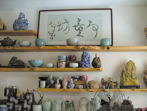 由于当时认识许多做陶瓷的朋友,童治亮觉得,或许把陶瓷和根雕结合起来会是一个好的出路。“当时就是想把陶瓷做出根雕的质感,把那种木材的纹理和色彩渐变在陶瓷上体现出来,所以就花了一笔钱,想找人帮我实现这个设想。”可是成品出来之后,童治亮却很不满意,“做出来的东西毫无特色,没有根雕的那种立体感。”经历了这一次失败童治亮决定亲自动手来研究陶瓷。