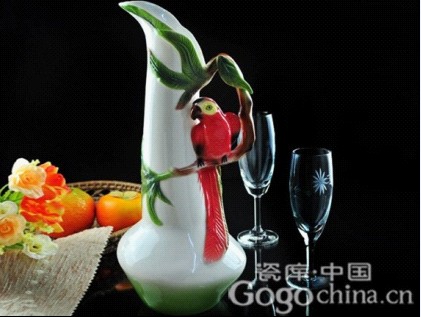 图:春节礼品·鹦鹉珐琅彩艺术花瓶