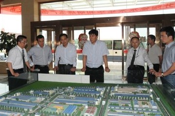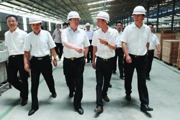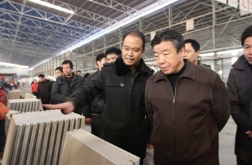 河南省委书记卢展工(右一)视察内黄陶瓷产业园区