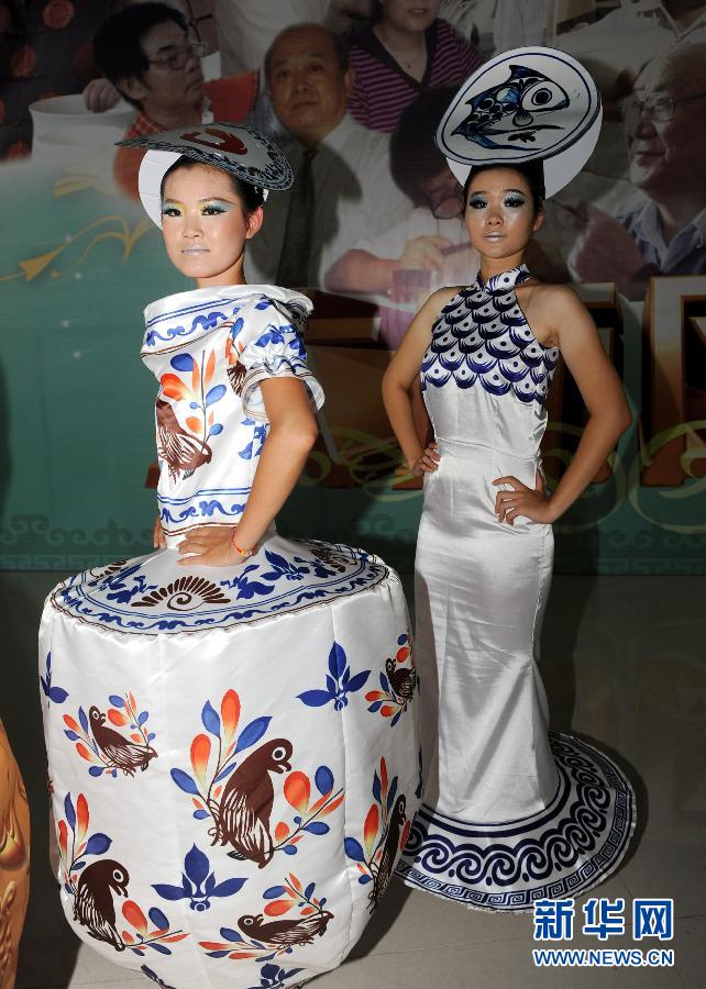 9月6日,模特在展示以“淄博陶瓷、当代国窑”为主题设计的“陶衣”。 当日,第十一届中国(淄博)国际陶瓷博览会在山东淄博开幕。为宣传陶艺文化和陶艺作品,组织机构推出了以“淄博陶瓷、当代国窑”为主题的“陶衣”服装秀。