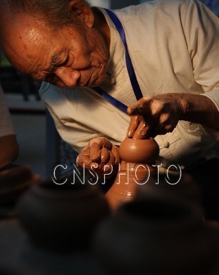 9月8日,潮州市陶瓷工艺美术大师吴瑞深在北京民族文化宫表演手拉壶艺绝活。8日上午,“广东民间工艺精品展”在民族文化宫开幕,展览汇集了150位广东民间工艺大师的近400件精品。