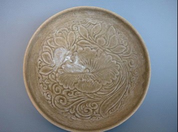 耀州窑:在今陕西铜川市,宋属耀州,故名。始烧于唐代,北宋中期以后达鼎盛,终于元代。 烧制唐三彩、白瓷、青瓷、黑瓷和酱色釉瓷等品种,以青瓷最负盛名。其青瓷产品的特征和鉴定要领是:(1)胎色灰白,胎质坚硬,露胎处呈现酱黄色。(2)釉色青黄、深沉,釉层较厚,器物往往上部厚,下部薄,胎釉交接处呈姜黄色。此外,青釉釉面上有的出现小的露胎褐斑,为其它青瓷所不见。(3)器型丰富,盘 、碗、杯子、碟、瓶、壶、罐、炉、盒、香薰、注壶、注碗、盏、钵、灯、枕等均有,器物造型多变,有花瓣式、瓜棱式和多折式,外形美观。其中力士炉颇具特色,炉身底座四周跪有力士。(4)唐末、五代青瓷采用划花装饰,纹饰题材多为水波与花草纹。(5)宋代装饰技法主要是刻花、印花、划花以及模印刻划相间,以刻花、印花为主。北宋中期刻花发展成熟,刀法犀利,线条刚劲有力,刀痕有斜度,是宋代刻花技法中最优秀者。北宋晚期的印花也很精美,布局严谨,对称匀衡。纹饰有缠枝莲、把莲、牡丹、缠枝菊、波浪、飞鹤、飞蛾、犀鹤、博古、海水游鱼、莲塘戏鸭和婴戏图案等,龙凤纹则是宫廷瓷器专用题材。水波纹外一般刻划以六角形边线,水波中三鱼多见。婴戏图案则以荡秋千为主。宋代花纹装饰特点是,早期于器面刻 划简单的花瓣纹;中期则花纹满布器面;到了晚期花纹线条大多纤巧。(6)金代产品瓷胎呈灰白色,青釉呈色偏黄。大量使用陶范印花,满布器面的花纹逐渐减少,而在盘、碗内壁,大量出现菊花、莲花、水波、鱼鸭纹等,构图简单,呈圆圈形。(7)元代产品器外一般施半釉,挖足浅,足较宽,似玉环底足,足内心有乳 状凸起。(8)晚唐、五代盘、碗一般采用支钉支烧,通体满釉,足内有3个支钉痕。宋代器物足端无釉,足内有釉。金、元时期一般采用叠烧,盘、碗内有叠烧痕,也有用一钵一器装烧的,则仅足端无釉。