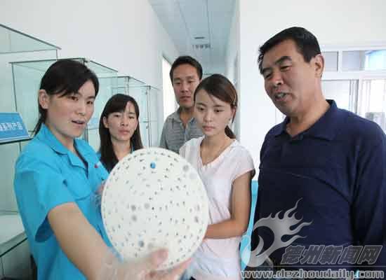 9月6日,技术人员在向客户介绍新产品。日前,禹王精密陶瓷公司自主开发的单晶硅外延基座产品实现批量生产,该产品采用国内首创的化学气相沉积法技术,填补国内空白,达到国际领先水平,打破了国外技术垄断。单晶硅外延基座是生产半导体基础材料的关键部件,国际上只有美国、德国、日本能够生产,国内半导体厂家几乎全部依赖进口。据了解,该产品广泛应用于航天技术,是卫星向地面传回信息时地面接收器反光镜上的重要配件。