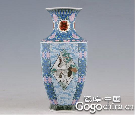 图:大师作品·釉下五彩刘杏大师手绘福寿安康仙鹤图陶瓷花瓶
