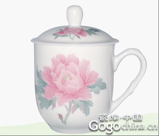 图:世界园艺博览会礼品·釉下五彩手绘牡丹陶瓷茶杯套装