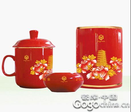 图:中国红瓷长安开花陶瓷茶杯办公3件套
