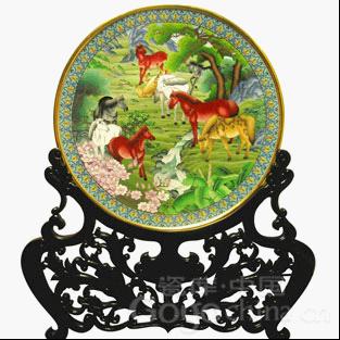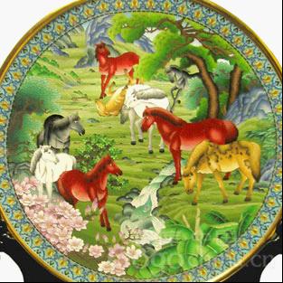 图:景泰蓝30寸群马盘-艺术瓷盘