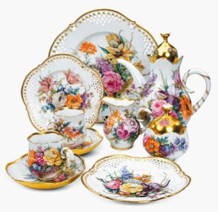 德国麦森高档瓷器的每一位彩绘、造型师都必须经过数十年的艺术与技术培养,能在每件创作上融入不同时期的艺术风格,展现近300年来的欧洲艺术史。举例来说,名为“一千零一夜”的麦森瓷器作品,以丰富的人物做为创作主题,巧妙地刻画出人物表情、眼神传递,以及情色的元素,整套瓷器价值100多万元,值得玩家收藏;而另一套价值人民币5万多的“勿忘我黄玫瑰”也颇受欢迎,其中包括咖啡壶一只、咖啡杯碟六只、奶罐一只、糖罐一只、点心盘六只。