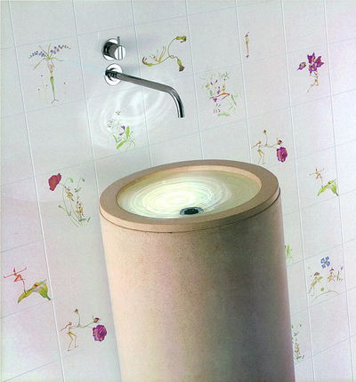 “在洗手盆上,手绘上一朵玫瑰或写上一句美好的祝福,加上自己的大名,这些都可以轻而易举实现。”