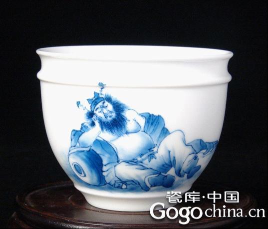 图:景德镇青花瓷重工人物钟馗醉酒陶瓷茶杯
