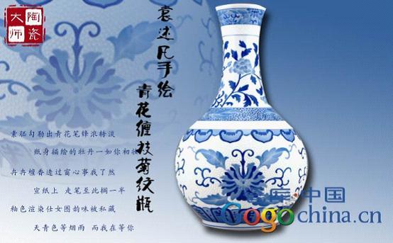 图:手绘青花缠枝菊纹花瓶—陶瓷艺术大师袁述凡作品