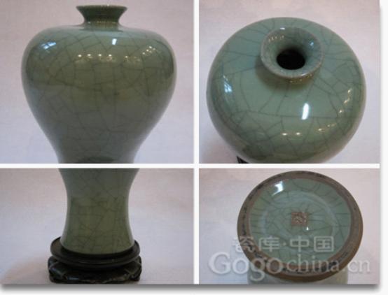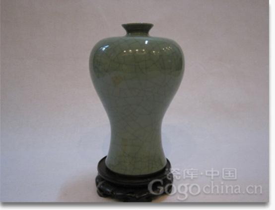 图:艺术花瓶·龙泉青瓷哥窑开片束腰小口瓶