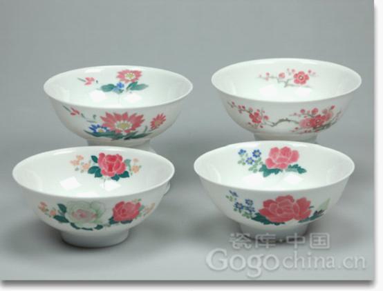 图:精品毛瓷·毛主席用瓷四季花卉碗4件套