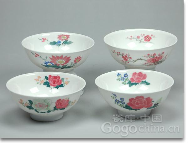 图:精品毛瓷·毛主席用瓷四季花卉碗4件套