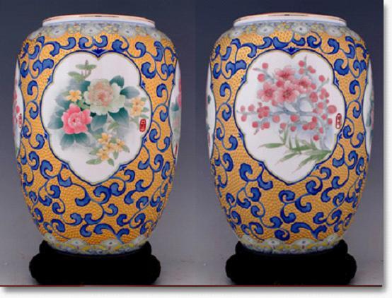 图:四季花开四面开光毛瓷画面高档艺术花瓶