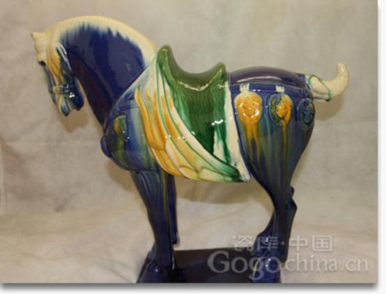 图:洛阳高档礼品唐三彩工艺品蓝披鬃大马