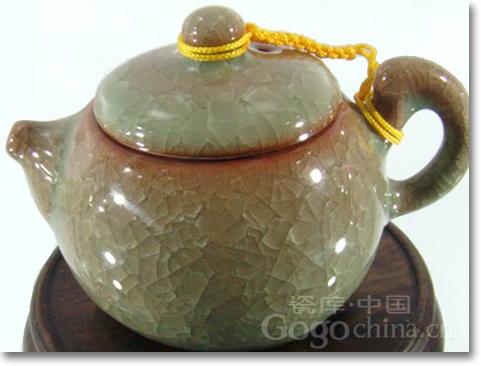 图:龙泉青瓷·官窑冰片小圆茶壶